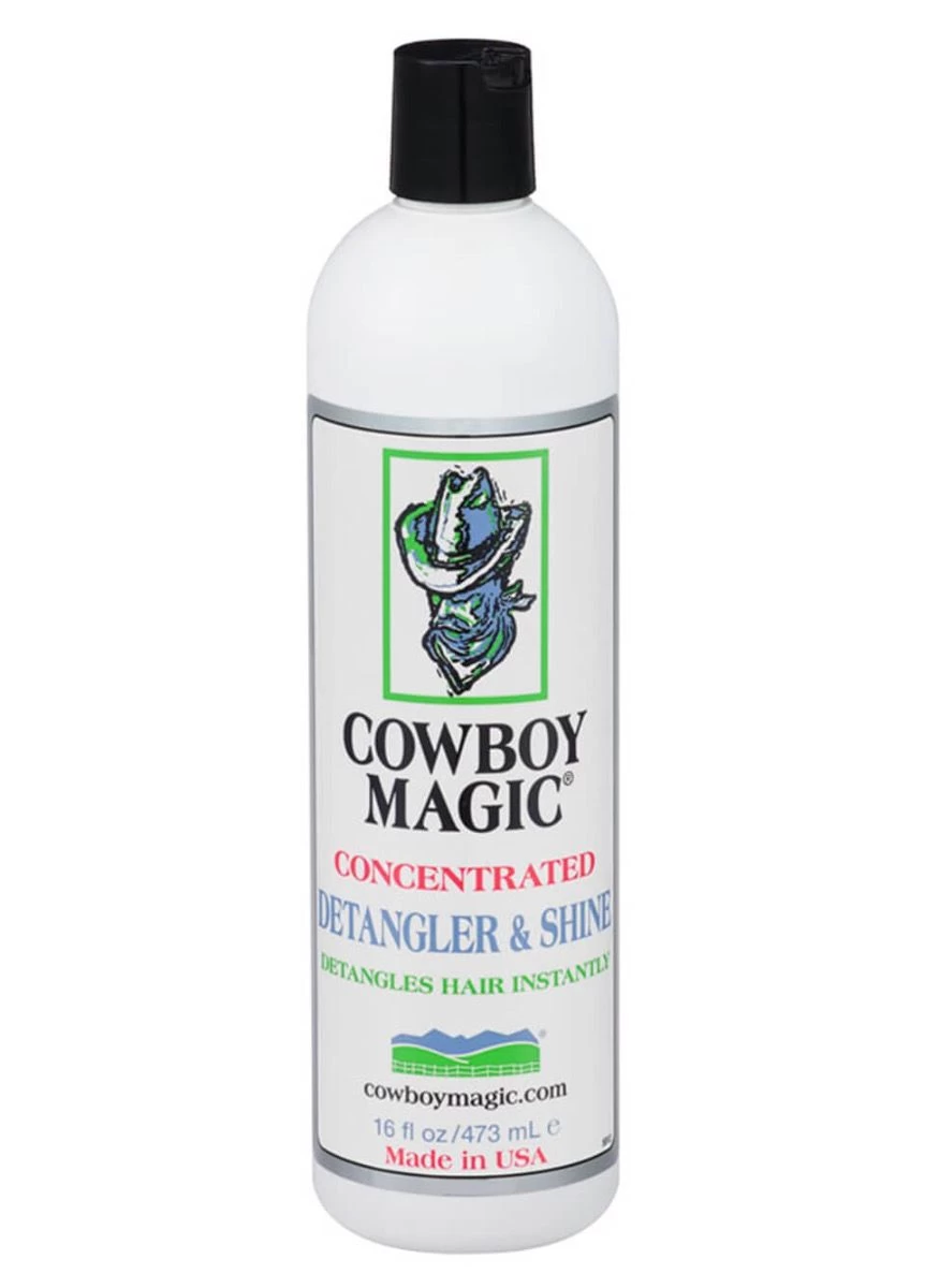 Cowboy Magic® Detangler & Shine is a concentrated serum which detangles all types of hair knots and dreadlocks in an instant! It’s non-oily formula is also free from alcohol and water, meaning it doesn’t dry the hair out. The deep conditioning action penetrates below the surface to restore moisture and strengthen the hair, giving a natural shine and soft feel. It also helps to repel dirt dust and sand, resulting in easier grooming and a long lasting shine