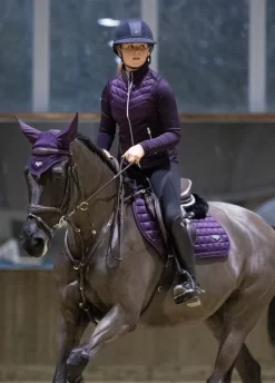Described as the most stylish dressage pad LeMieux have ever produced. The Loire collection exudes sophistication and class – showing style without showing off! Woven Satin fabric gives a beautiful sheen to these pads whilst still benefitting from the wonderfully soft and breathable Bamboo lining. The 100% natural Bamboo material controls heat & sweat and wicks very efficiently. The whole pad benefits from a new extensively researched soft friction-free suede binding which is specially fabricated to smoothly contour the edges. This new technique helps retain the perfect saddle pad shape and binding profile. The textured PU leather girth protection area is complimented by an embossed logo and carries the usual signature LeMieux lower girth strap with its inner locking loops. The piece de resistance of the Loire Dressage Square is its unique metal badge on a leather mount in the lower back corner.