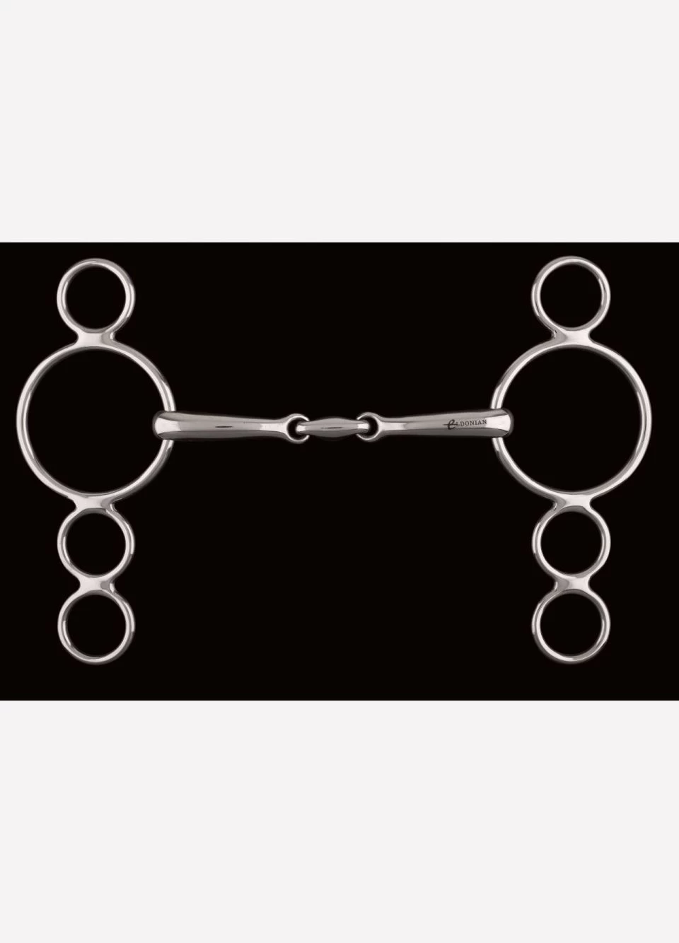 A great favourite among our customers, the lozenge link is a lovely mild mouthpiece, with the dutch gag giving extra controllability when required. There is a choice of rings to put your reins on – the lower down you place them, the more poll pressure you exert, making it very versatile. It may also be used with 2 pairs of reins or pelham roundings. Always try out a new bit in the prescence of an experienced friend or trainer as you cannot always factor for how a horse will react.